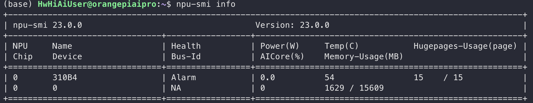 可以使用 npu-smi info 来查看当前驱动版本,例如下面显示驱动版本为 23.0.0