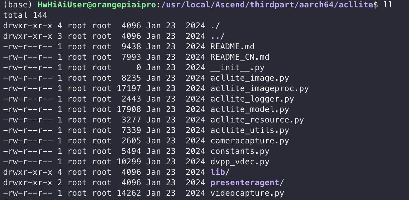 最终会在 /usr/local/Ascend/thirdpart/aarch64/acllite 中看到使用 python 封装过的 api,如下: