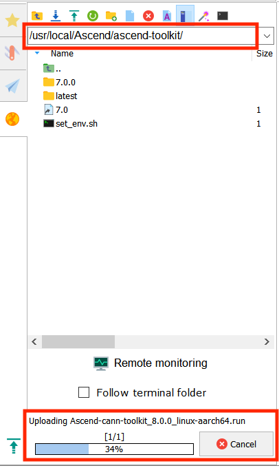 将上面这个 CANN 软件上传到 香橙派对应的 /usr/local/Ascend/ascend-toolkit/